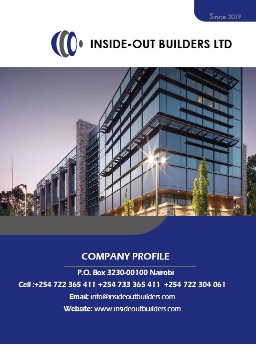 The undersigned reader of Inside-Out Builders Ltd Company Profile hereby acknowledges that the information provided is Completely Confidential and therefore the reader agrees not to unsolicitedly share anything found in this document without the express written consent of Lazarus Nick Ogembo or Shareholders - Benjamin Barrack & Festus Millonde. It is also acknowledged by the reader that the information to be furnished in this Company Profile is in all Aspects Confidential in Nature, other than information that is in the public domain through other means and that any disclosure or use of the same by the reader may cause serious harm and or damage to Inside-Out Builders Limited. Upon request, the Company Profile document will be immediately returned to any of the above Names.